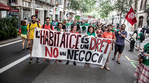 Este sábado, Barcelona ha vivido una jornada histórica con la manifestación por el derecho a la vivienda más grande de la historia del Estado español. 170.000 personas han llenado las calles del centro de la ciudad para exigir las cuatro medidas urgentes contra la especulación: bajada de los alquileres, contratos indefinidos, recuperación de los pisos vacíos, turísticos y de temporada, y prohibición de la compra para especular. La marcha, convocada por más de 4.000 organizaciones, ha contado con una treintena de columnas llegadas de toda Cataluña a pie, en autobús o en tren.