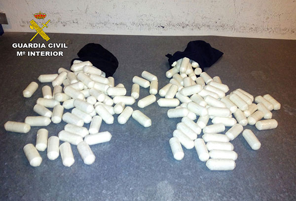 Agentes del Grupo de Intervención Rápida (GIR) de la Compañía de la Guardia Civil de Costa Teguise, han procedido a la detención de dos personas de iniciales M.V.M., de nacionalidad extranjera y 30 años de edad y J.E.R.P., de nacionalidad española y 45 años de edad por ser los presuntos autores de un delito contra la salud pública, en su modalidad de tráfico de drogas, al intervenirle 1.530 gramos de cocaína distribuidas en 134 cápsulas.