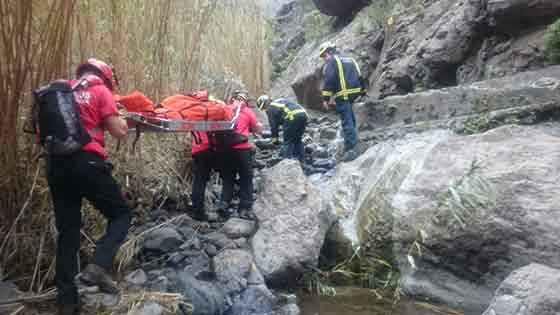 Efectivos del Consorcio Insular de Bomberos, con base en el parque de San Miguel de Abona y voluntarios de Santiago del Teide y Adeje, fueron requeridos este martes para intervenir en el rescate de una persona que sufrió una caía mientras descendía el barranco de Masca, en el municipio de Buenavista del Norte.