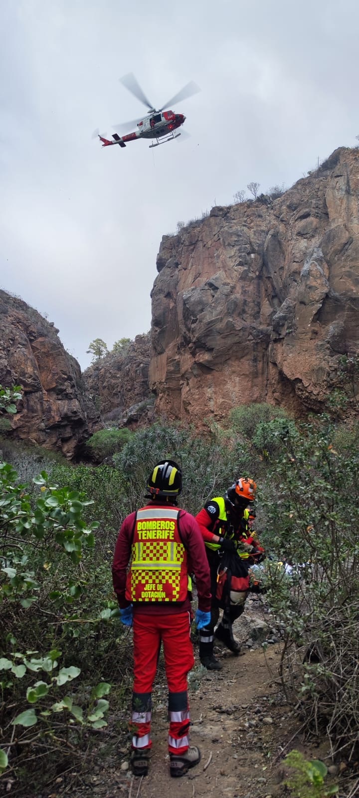 Una escaladora había sufrido una caída, por lo que colaboraron con los rescatadores del Grupo de Emergencias y Salvamento (GES) para trasladarla al Servicio de Urgencias Canario (SUC).