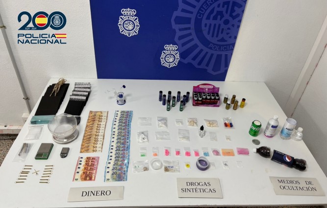 En el registro de dicho inmueble, se incautaron 36 gramos de tusi, 7 gramos de éxtasis, 103 gramos de mefedrona, 2 gramos de ketamina, 44 gramos de cocaína, 30 gramos de metanfetamina, 18 tubos de popper, 1 bote con GHB, 1090 euros en efectivo y diversos objetos destinados a la ocultación de sustancias estupefacientes.