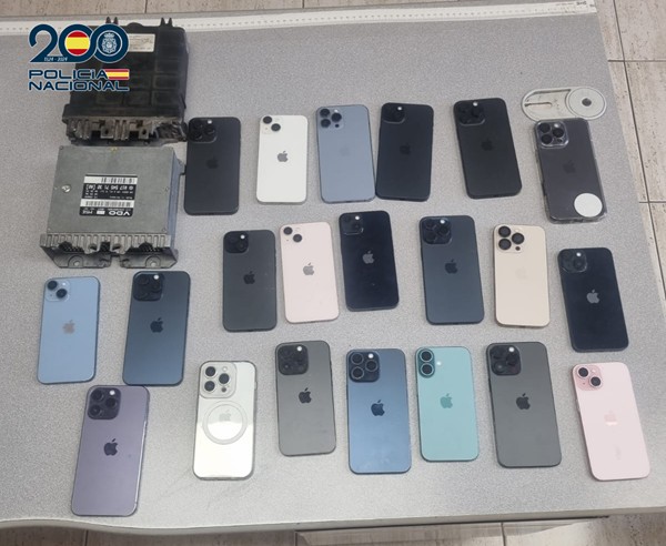 Tras inspeccionar el vehículo, los agentes encontraron 20 teléfonos iPhone, distribuidos en distintas partes del automóvil, algunos envueltos en papel de aluminio para evitar su detección, 2 centralitas de vehículos, una de la marca Volkswagen (Siemens) y otra de Mercedes.