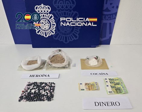 Han resultado incautados 808,5 gramos de heroína, 95 gramos de cocaína y 500 euros en efectivo