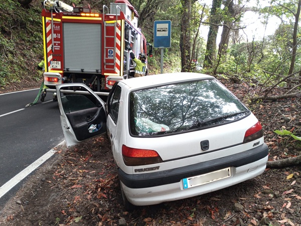 En Arona, bomberos del parque de San Miguel intervinieron, sobre las 16:00 horas, en un accidente de tráfico de dos vehículos que colisionaron en la TF-66 PK 4. En el lugar, comprobaron que un vehículo se había salido de la vía y se había precipitado unos metros. Los efectivos procedieron a estabilizar el vehículo salido de la vía y a extraer al copiloto del coche para hacerle la transferencia al SUC. Además, se desconectó la batería a ambos coches. También intervinieron Guardia Civil y Policía Local.