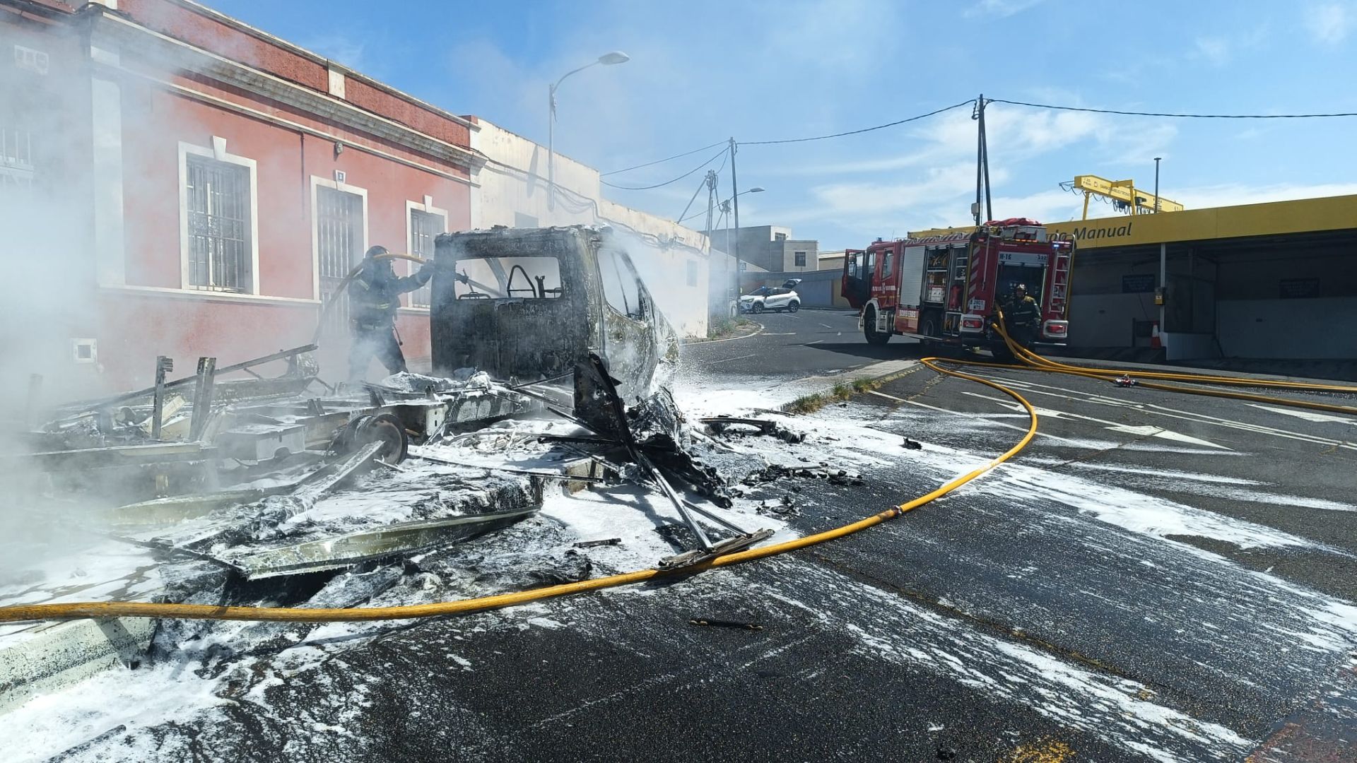 Finalmente, en Santa Cruz fueron activados, sobre las 11:05 de este viernes, por el incendio de un vehículo en la carretera general del sur. Un camión ligero de carga estaba ardiendo en su totalidad cerca de una gasolinera, por lo que procedieron a su extinción inmediata y a asegurar los surtidores como medida de prevención para evitar una propagación descontrolada del fuego. Se colabora con la Policía Local en la retirada del vehículo y limpieza de calzada. Intervino el Cuerpo Nacional de Policía, el Servicio de Urgencias Canario y personal de carreteras.