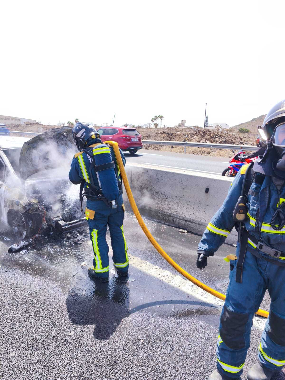 Bomberos del parque de San Miguel fueron activados, sobre las 12:00, tras producirse un accidente de tráfico en el kilómetro 66 de la TF-1. Llegados al lugar comprobaron que uno de los vehículos estaba ardiendo por la zona del motor, por lo que procedieron a su total extinción. Acudió la Policía Local.