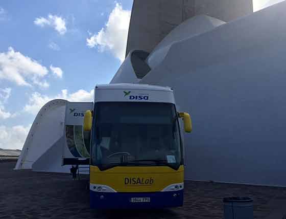 DISALab, el laboratorio itinerante de la Fundación DISA, llegó ayer a Santa Cruz de Tenerife proveniente de Las Palmas de Gran Canaria para seguir participando en la Miniferia de las Semanas de la Ciencia y la Innovación que tendrá lugar en la Isla a partir de hoy. De esta forma, la Fundación DISA, en su compromiso con Canarias, ha querido formar parte de esta iniciativa organizada por el Gobierno de Canarias en las dos Islas Mayores.