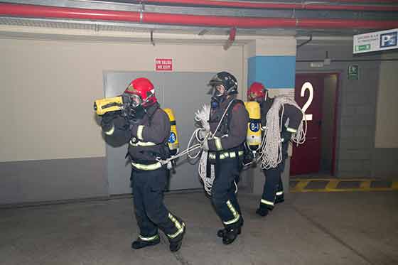 En el supuesto, los bomberos tuvieron que extinguir el incendio causado por un vehículo estacionado en el interior del parking. Además, los efectivos del Consorcio participaron en el rescate de varias personas atrapadas, analizaron los detectores de gases y llevaron a cabo los controles de humo correspondientes, además de finalizar la intervención con la realización de las tareas de ventilación. Además del rescate de posibles víctimas y la extinción, se debe prever que el fuego no se desplace a la zona donde se encuentra ubicados los generadores eléctricos en los que existen tanques de gasóleo.