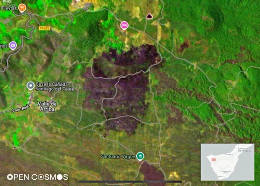 El satélite Hammer de Open Cosmos captó imágenes del incendio declarado en El Tanque el lunes 28 de julio, apenas horas después de que se diera por controlado
