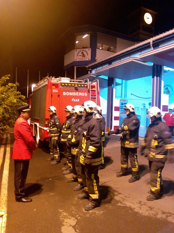 Para finalizar el jefe del parque, Carlos Barrera, les comunico la superación de las pruebas y se procedió al tradicional bautizo de los nuevos bomberos, con un chorro de agua a presión dirigida por sus nuevos compañeros. Tras esta tradición se ofreció una cena a los nuevos bomberos y familiares que se dieron cita, donde se les hizo entrega de sus credenciales como miembros activos del parque de Bomberos Voluntarios de Adeje.